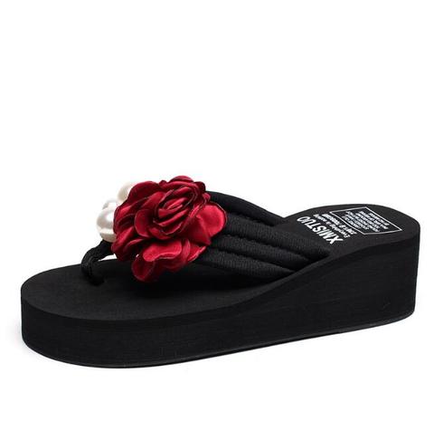 Dép đi biển cho phụ nữ mùa hè dày đế cao gót dép cho phụ nữ bãi biển hoa dốc Flip Flops