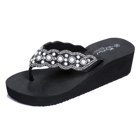 Dép nữ mùa hè Rhinestone Dép thời trang dép đi biển Giày gót Dép xỏ ngón thoáng khí
